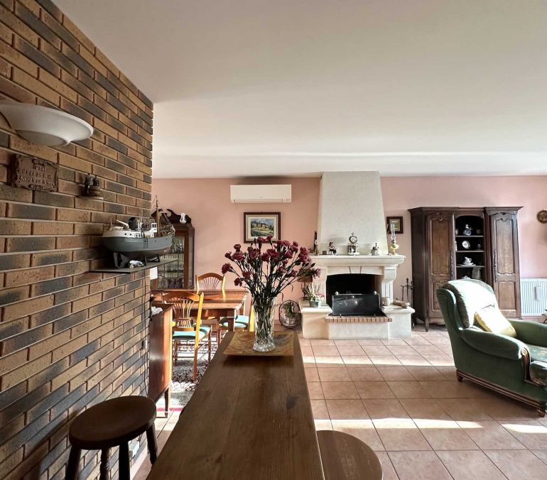 Dès l’entrée, vous serez séduit par une vaste pièce de vie de 45 m², lumineuse, conviviale et traversante, offrant de beaux volumes.