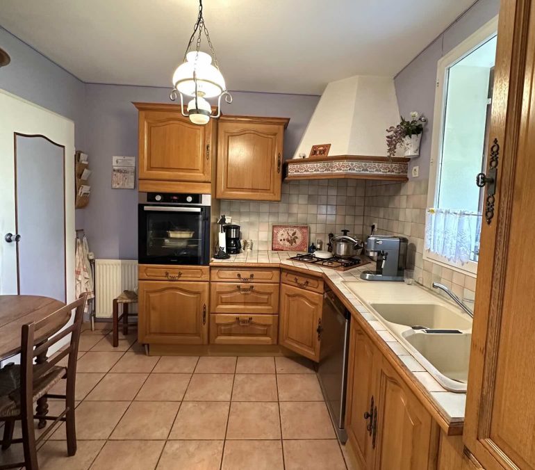 La maison se compose également d’une cuisine séparée, de 4 chambres, de 2 salles d’eau, ainsi que de nombreux placards et espaces de rangement, pensés pour un confort de vie optimal.