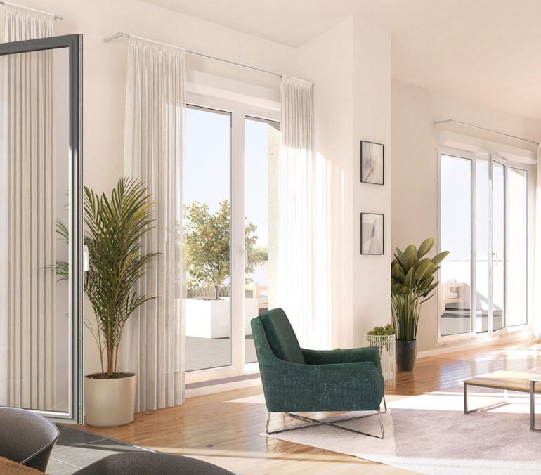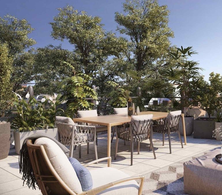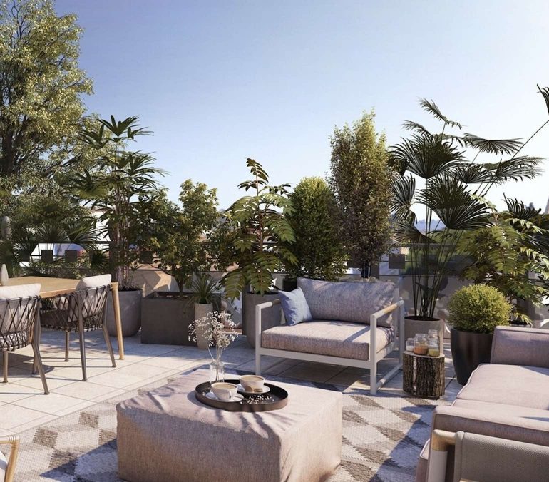 Les appartements du dernier niveau, en attique, disposent de belles ouvertures et d’une grande terrasse. Des espaces extérieurs agréables pour vous prélasser au soleil ou prendre vos repas.