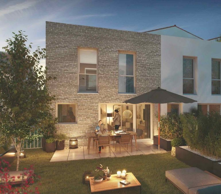 Dans la confidence du cœur de CEÏBA, quelques maisons revendiquent leur droit d’indépendance. Accessibles grâce à un accès par l’avenue Anatole France, elles dévoilent une écriture architecturale contemporaine inspirée des maisons et échoppes alentours : toitures à deux pans en tuiles nuancées, parements de briquettes alternant les douces teintes de brun et sable, encadrement des ouvertures maçonnées de blanc.