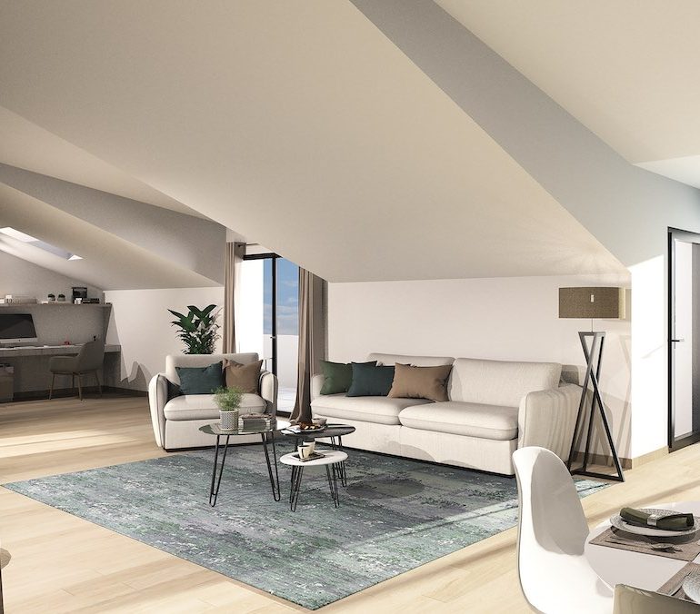 Afin d’être en osmose avec la verdure environnante, les terrasses ont reçu un traitement végétal. Les fenêtres en oriel accentuent la verticalité de chaque façade. La résidence dispose d’appartements du studio au 5 pièces offrant de belles pièces à vivre. Loggias et terrasses viennent apporter charme et luminosité à vos appartements.