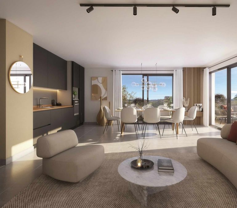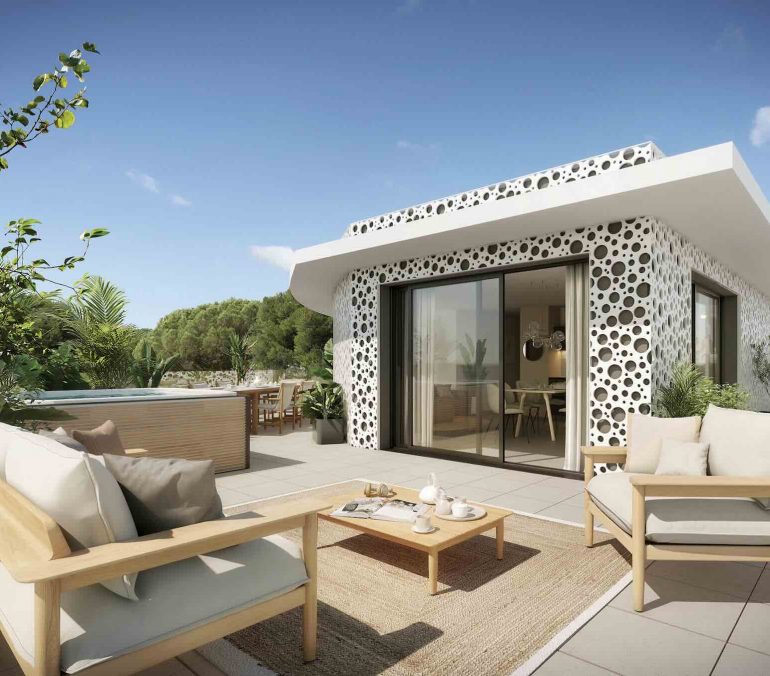 Tous les appartements sont prolongés par un profond balcon ou une magnifique terrasse plein ciel pour profiter des vues agréables sur le paysage alentour. Certains logements T4 disposent même d’un spa sur la terrasse.